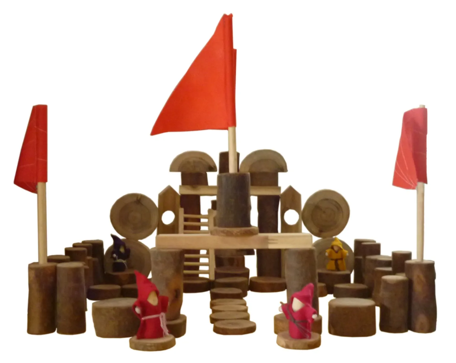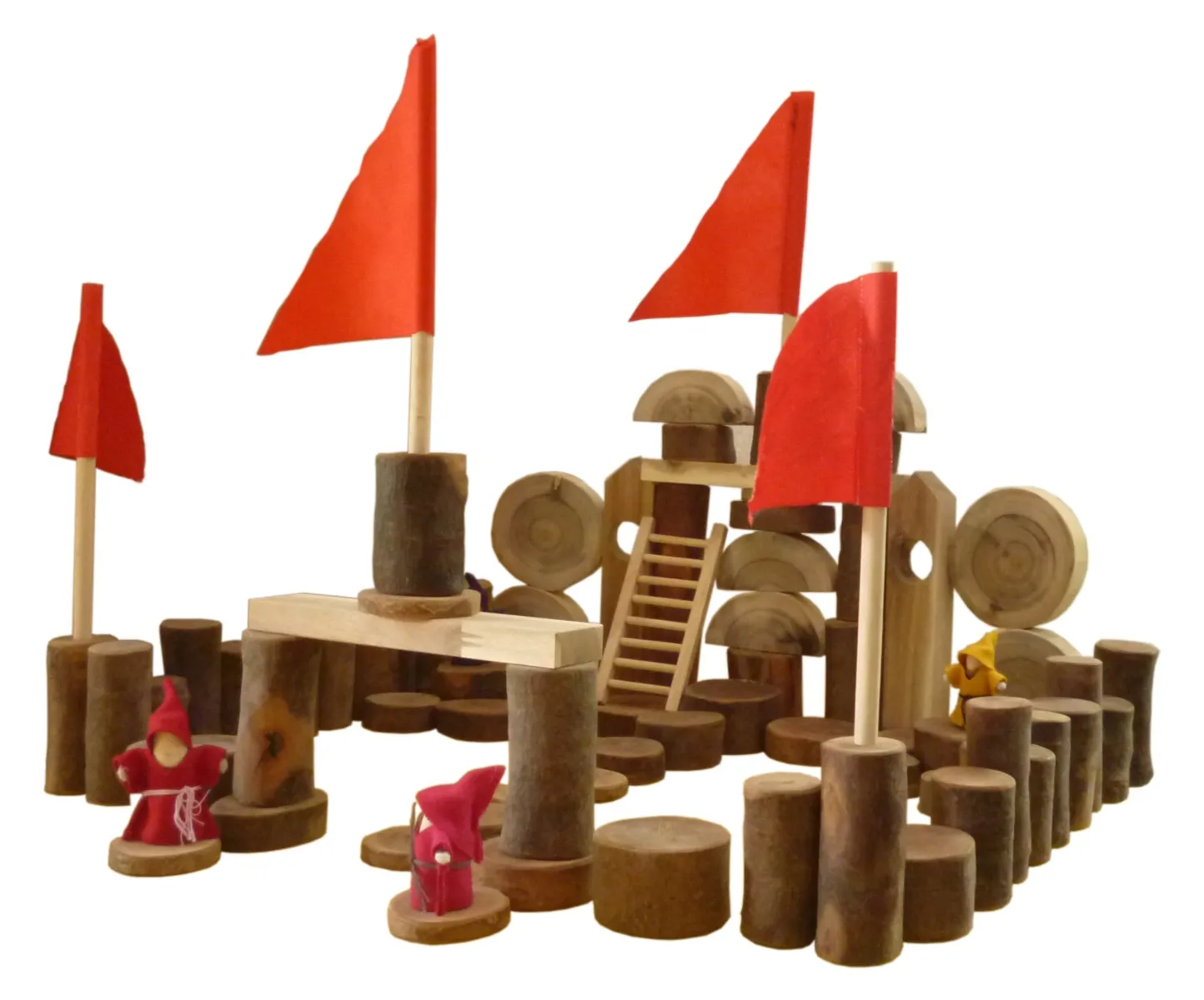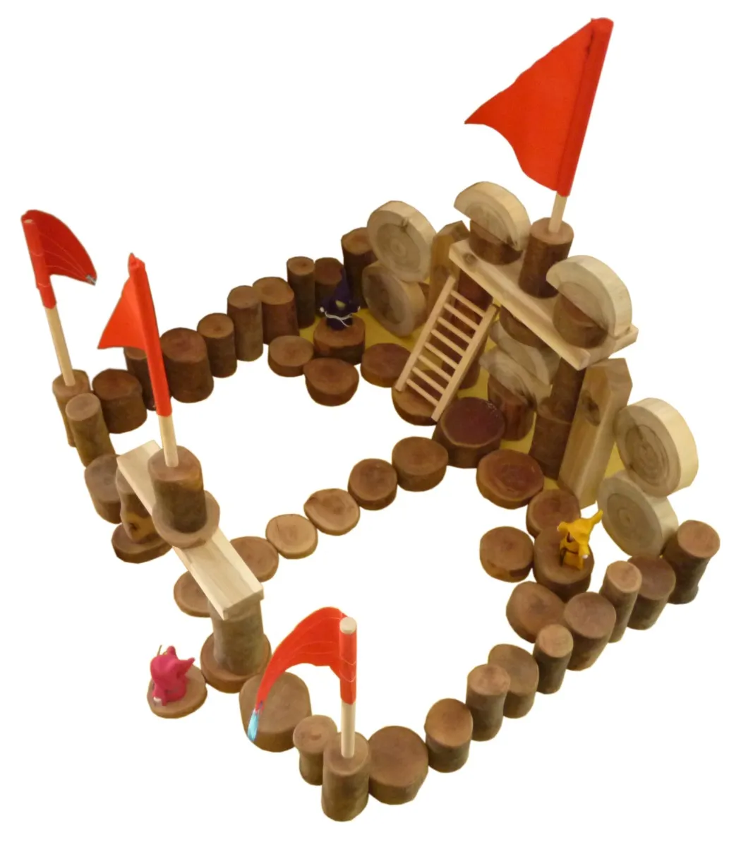 This set of natural tree blocks comprises of assorted natural tree blocks, flags and dolls, ready for little people to let their imagination go!