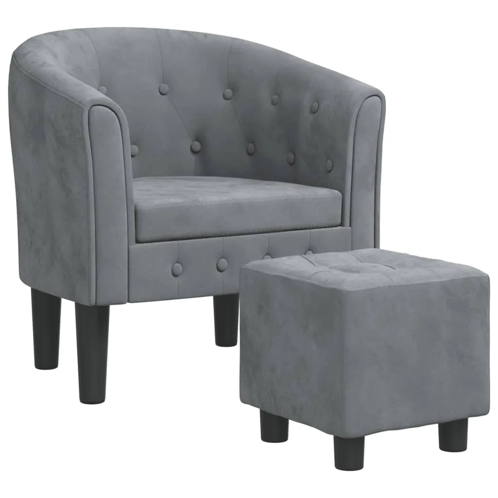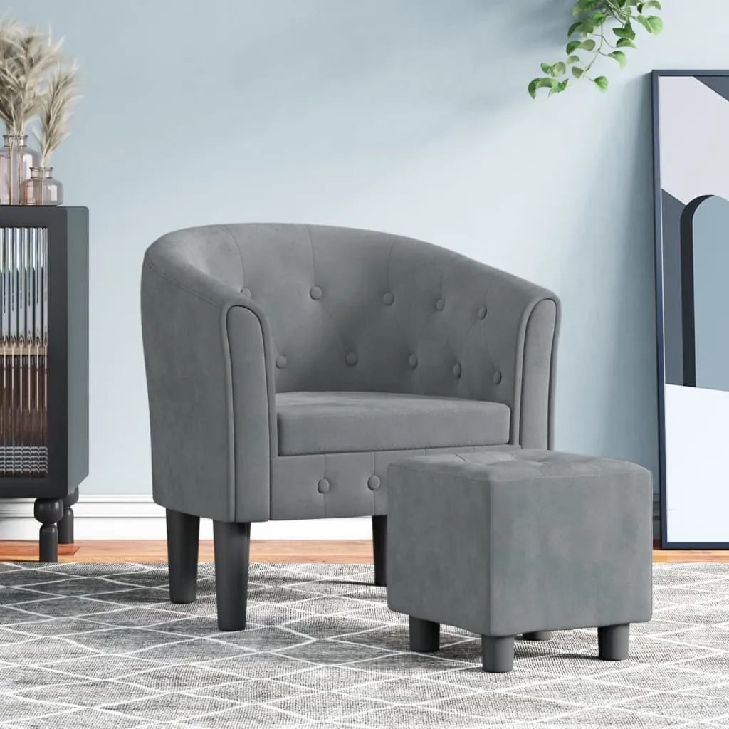This modern tub chair with footstool will add a touch of elegance to your living room, bedroom, guest room, or office! Soft velvet: The accent chair is made of velvet which is a soft and comfortable fabric that feels nice against the skin. Sturdy and stable frame: The frame of this armchair is made of plywood and pinewood to ensure sturdiness and stability.Practical footstool: The footstool is suitable for resting your feet or offering you an additional seat in your room. Additionally, the simple design and compact size make it ideal for almost all your living spaces.Comfortable seat experience: This bedroom chair is highly comfortable with its thickly padded seat, backrest, and armrests. It is the ideal choice for you to fully relax while reading, chatting, watching TV, or listening to music.