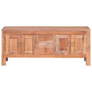 The unique wooden TV cabinet is specially designed for your bedroom and living room! This TV stand, made of solid mahogany wood, is stable and durable. Mahogany with a straight and even grain is relatively free of voids and resists wood rot. Its reddish-brown colour darkens over time and displays a reddish sheen when polished. The craftsmanship and the beautiful wood grains make every piece of furniture unique and slightly different from the next. This media unit also features 2 drawers and 4 doors, providing ample storage space for keeping your essential items organised and within reach. Important note: Colours and grains vary from piece to piece, making each piece unique. The delivery is random as well.