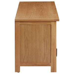 This TV cabinet exudes a rustic charm and is practical with spacious storage spaces. This robust TV stand is crafted from solid oak wood and MDF, making it durable. The sturdy tabletop provides a stable and secure surface on which you can place your TV, a fruit basket or vase or other decorative items. This TV unit features two doors and two open compartments, providing ample space for storing your multimedia appliances, books and various items.