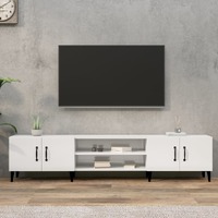 This trendy TV cabinet, featuring a sleek and stylish design, is meant to be a decorative as well as practical addition to your room decor. Durable material: The engineered wood is of exceptional quality with smooth surface and also features strength, stability, and resistance to moisture.Ample storage space: The TV unit has 4 compartments and 4 doors, offering sufficient storage space to keep your essentials well organised and within reach.Metal feet: The metal feet add a modern and calm style to your interior while ensuring stability.Displaying function: The sturdy top of this TV stand is a perfect spot for displaying potted plants, framed photos and other decorative items. Good to know:To make assembly as easy as possible, each product is delivered with a manual.