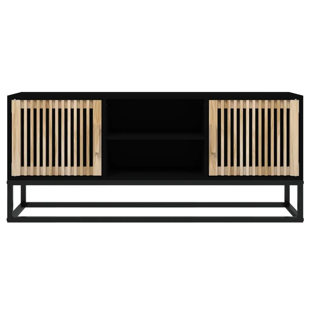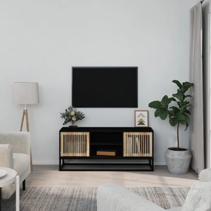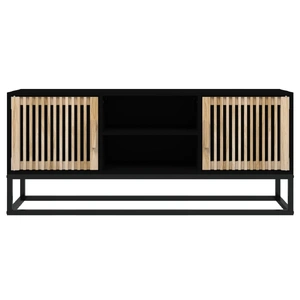 Featuring a stylish yet practical design, this TV cabinet is meant to become a focal point of your room. Durable material: The engineered wood is of exceptional quality with smooth surface and also features strength, stability, and resistance to moisture.Ample storage space: Equipped with 2 open compartments and 2 compartments behind doors, the TV stand offers ample storage space to keep all your magazines, DVDs and any other items well organised.Sturdy top: The top of the TV unit provides a secure surface to display decorative objects, photo frames, or potted plants.Metal feet: The metal feet add a calm style to your interior while ensuring stability. Good to know:To make assembly as easy as possible, each product is delivered with a manual.