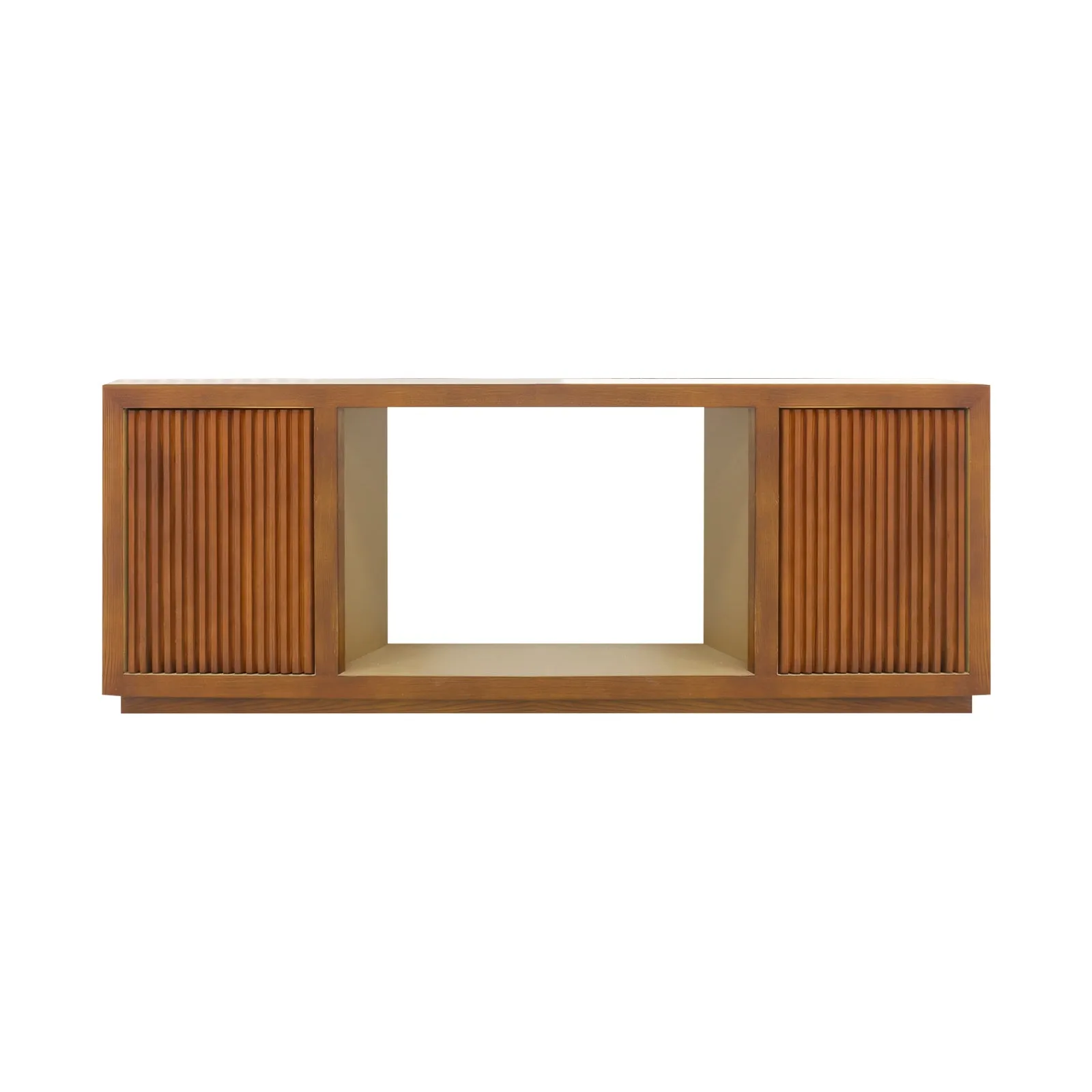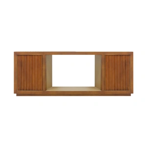 There are enclosed space of storages with two sideboards cum doors. These doors have waveform design on them which adds appeal to the TV Cabinet.