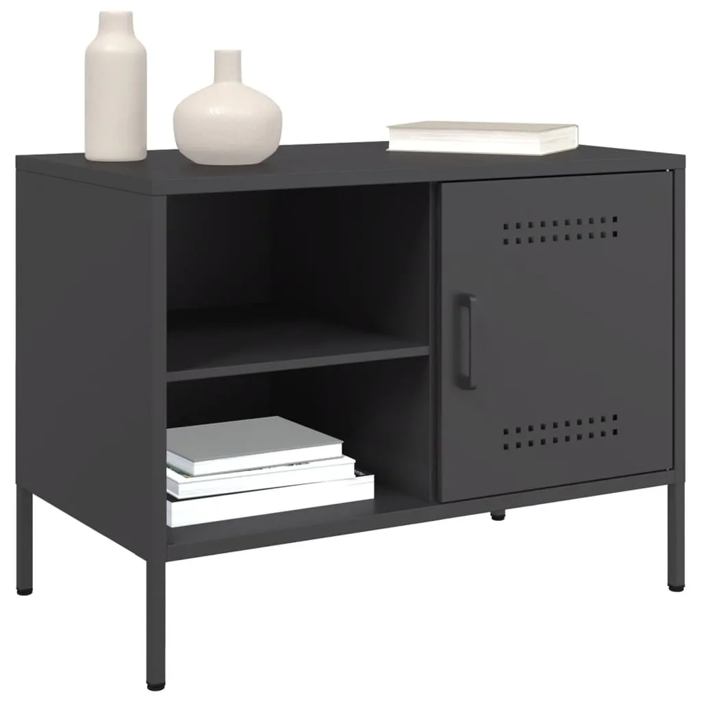 These TV cabinets with an industrial style make a timeless addition to your living room or bedroom. Robust and stable frame: Steel is strong, stable, and durable, making it an ideal choice for a wide range of applications, from furniture manufacturing to construction.Ample storage space: The TV bench has 1 compartment behind the door and 2 open shelves, which provides ample storage space for keeping your magazines, books, DVDs, and multimedia devices well-organised and within reach.Easy to clean: The TV stand is easy to clean with a damp cloth and requires less maintenance.