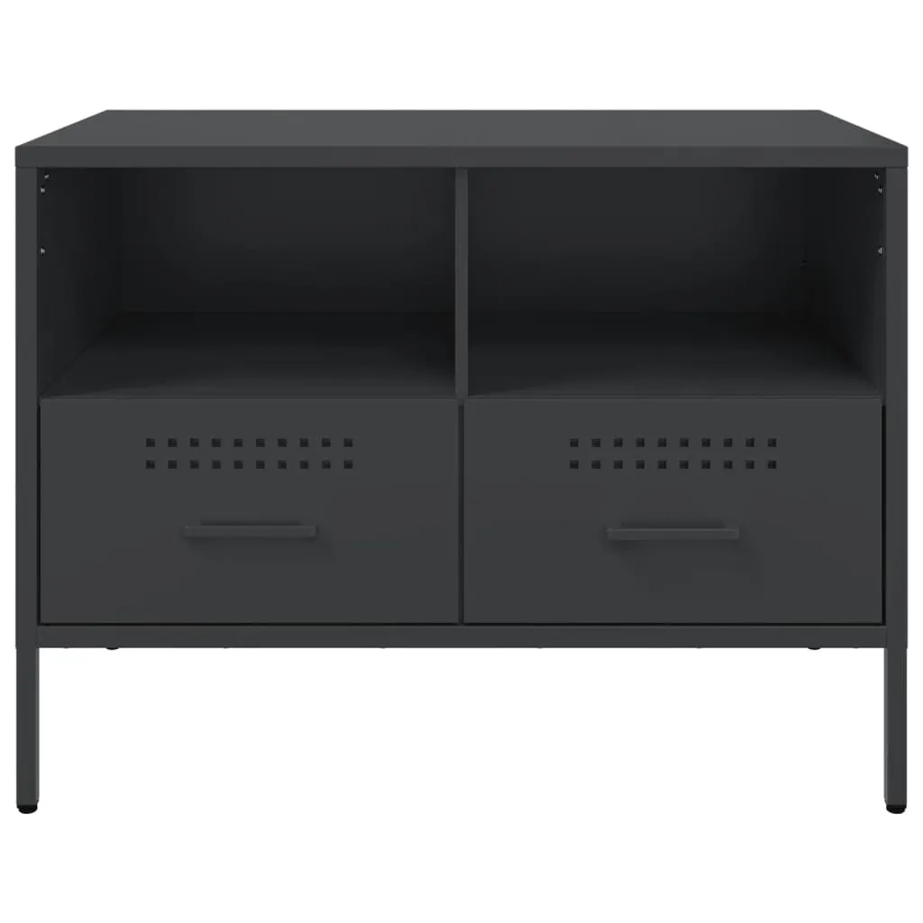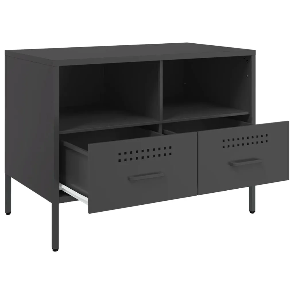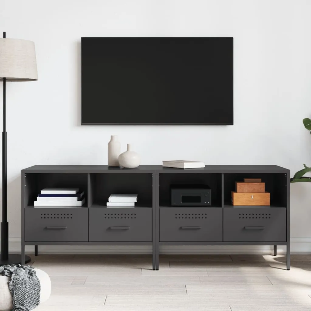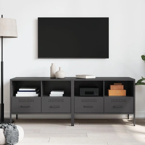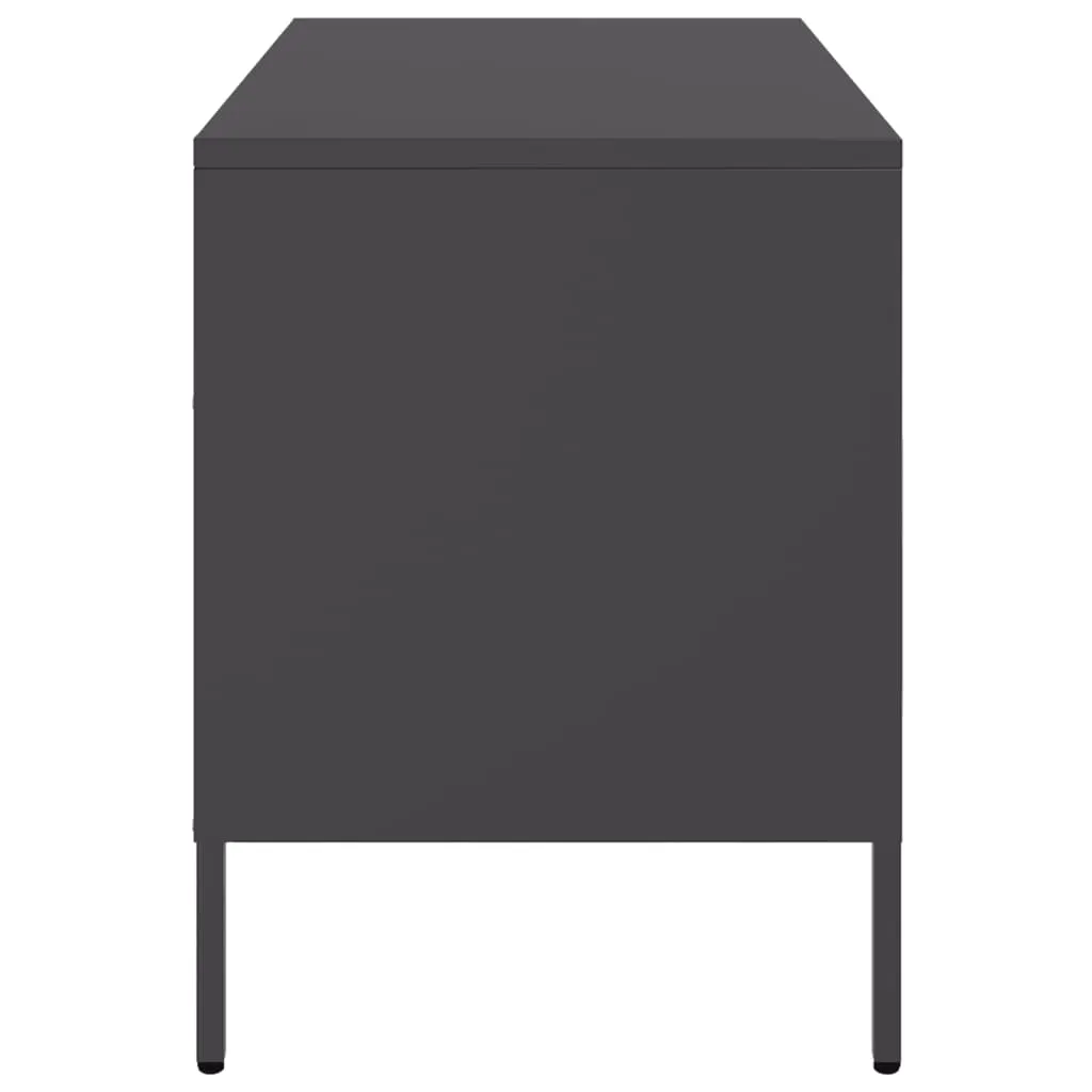 These sturdy TV cabinets with an industrial style makes a timeless addition to your living room or bedroom. Stable material: The TV stand's frame is made of cold-rolled steel. Cold-rolled steel is a kind of low-carbon steel produced by a "cold rolling" method and processed at near normal room temperatures. Cold-rolled steel has a smoother surface, greater strength, and higher precision.Ample storage space: This TV bench provides ample storage space for keeping your magazines, books, DVDs, remote control and other small items well-organised and within reach.Adjustable screw feet: This TV sideboard is equipped with four adjustable screw feet to compensate for uneven floors, ensuring stability and balance.Easy to clean: The metal cabinet is easy to clean with a damp cloth and requires less maintenance. Warning:To prevent it from tipping over, this product must be used with the provided wall attachment device.