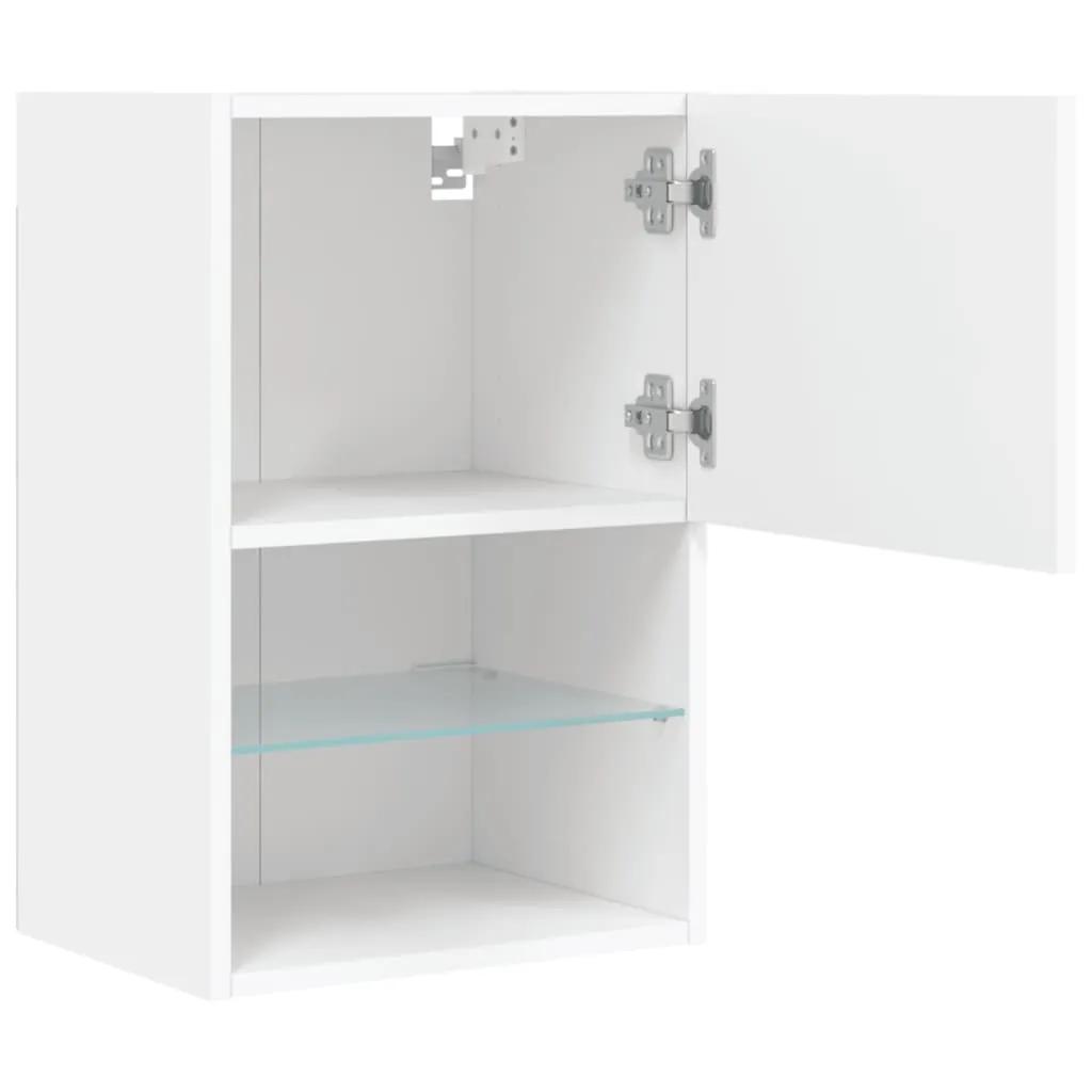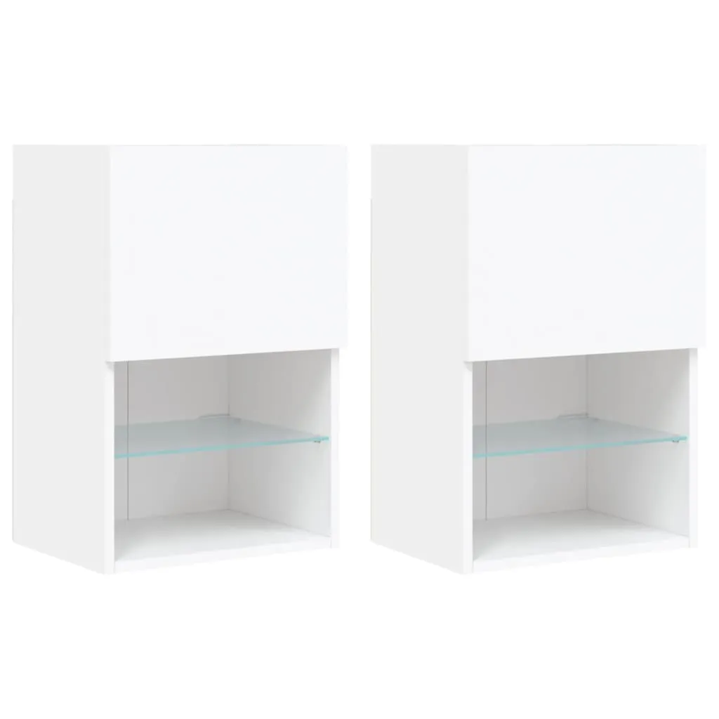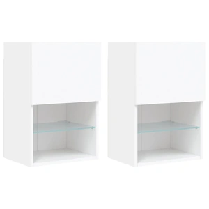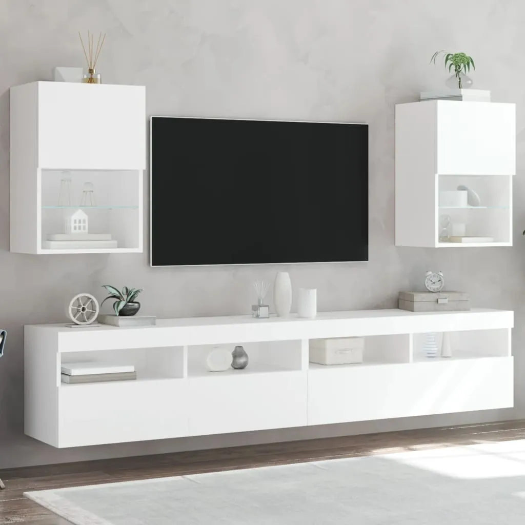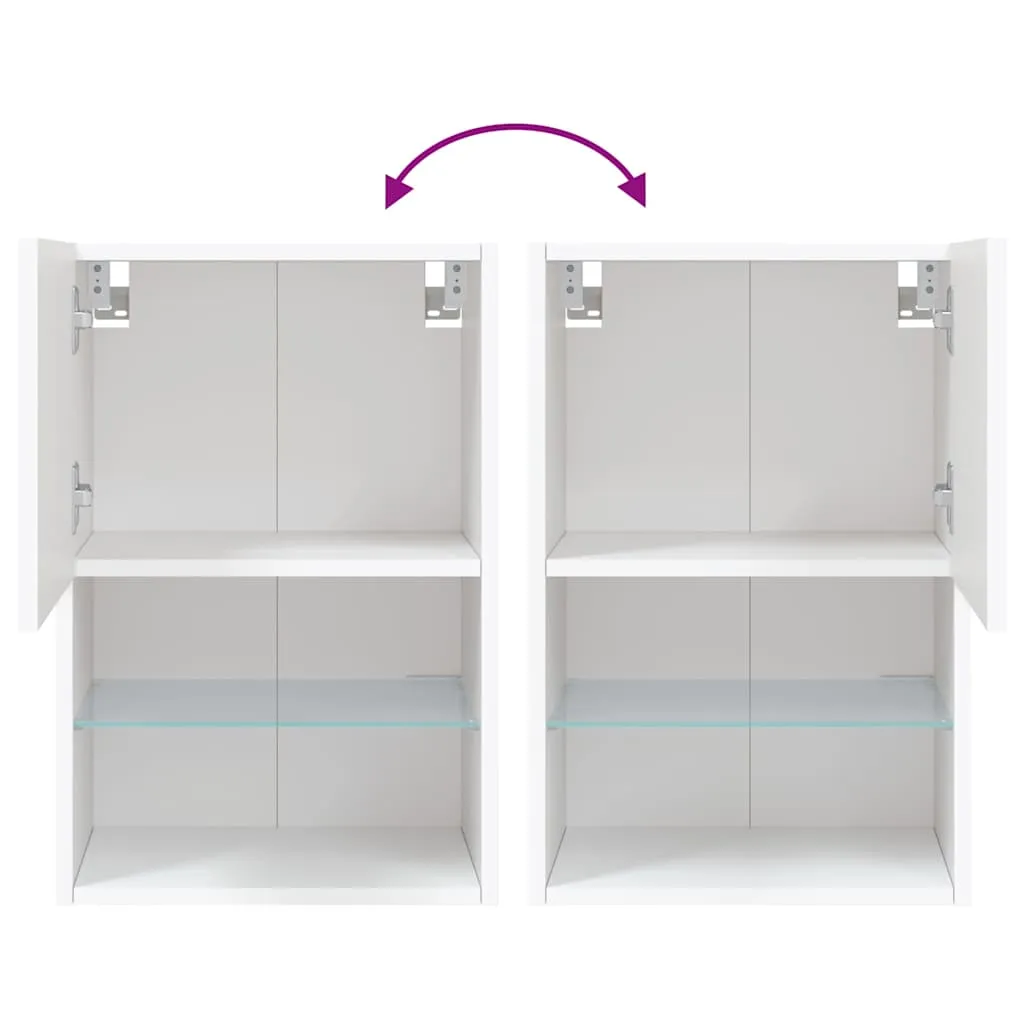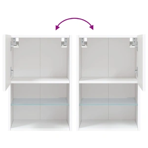 Featuring a trendy yet practical design, these TV cabinets with LED lights will become a focal point of your room. Durable material: The engineered wood is of exceptional quality with smooth surface and also features strength, stability and resistance to moisture. Made of engineered wood, these TV stands are sturdy and durable.Ample storage space: These TV units offer ample storage space for keeping your DVD players, receivers, disks, and other small items well organised and within reach.RGB LED lights: These entertainment centres feature RGB LED lights, which have different menus to change the colour of lights and let the colour adjust automatically.Wall-mounted design: These media cabinets can be wall-mounted to add extra storage space. That way, you can maximise your floor space and keep the area clean. Good to know:Screws and plugs for inside the wall are not included. We advise to find and use screws and plugs suitable specifically for your walls. If you're not sure, you can consult with a professional. Please read and follow each step of the instructions.The product has a USB connector that requires a certified 5V USB power source (not included).