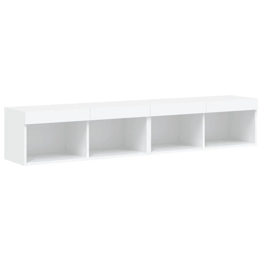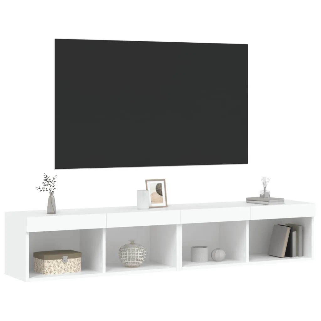 Featuring a trendy yet practical design, these TV cabinets with LED lights will become a focal point of your room. Durable material: The engineered wood is of exceptional quality with smooth surface and also features strength, stability and resistance to moisture. Made of engineered wood, these TV stands are sturdy and durable.Ample storage space: These TV units offer ample storage space for keeping your DVD players, receivers, disks, and other small items well organised and within reach.RGB LED lights: These entertainment centres feature RGB LED lights, which have different menus to change the colour of lights and let the colour adjust automatically.Wall-mounted design: These media cabinets can be wall-mounted to add extra storage space. That way, you can maximise your floor space and keep the area clean. Good to know:Screws and plugs for inside the wall are not included. We advise to find and use screws and plugs suitable specifically for your walls. If you're not sure, you can consult with a professional. Please read and follow each step of the instructions.The product has a USB connector that requires a certified 5V USB power source (not included).