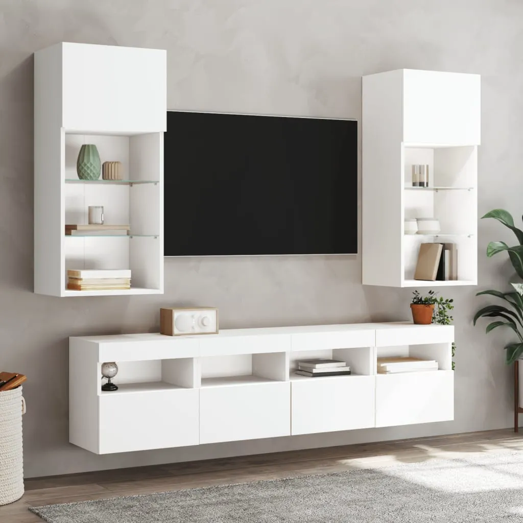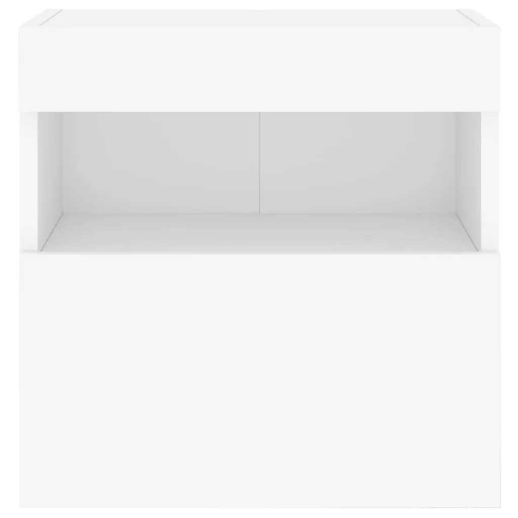 These TV wall cabinets are the perfect solution for your living space to maximise space and keep the floor areas uncluttered. Durable material: The engineered wood is of exceptional quality with a smooth surface and also features strength, stability and resistance to moisture.RGB LED lights: The wall media cabinet is equipped with vibrant RGB LED lights. With various customisable menus, you can effortlessly change the colour of the lights and even set them to adjust automatically. These LED lights not only enhance the contemporary look of the floating TV unit but also add to its trendy appeal.Ample storage space: The TV wall unit offers ample space to keep your small items like books, DVDs, and magazines neatly organized and within reach.Versatile: The cabinet is multifunctional and can be used as a TV wall cabinet or a wall-mounted bedside cabinet. You can also combine it with other cabinets to create a stunning living wall.Wall-mounted design: This LED cabinet can be wall-mounted to add extra storage space. That way, you can maximise your floor space and keep the area clean. Good to know:Screws and plugs for inside the wall are not included. We advise to find and use screws and plugs suitable specifically for your walls. If you're not sure, you can consult with a professional. Please read and follow each step of the instructions.The product has a USB connector that requires a certified 5V USB power source (not included).