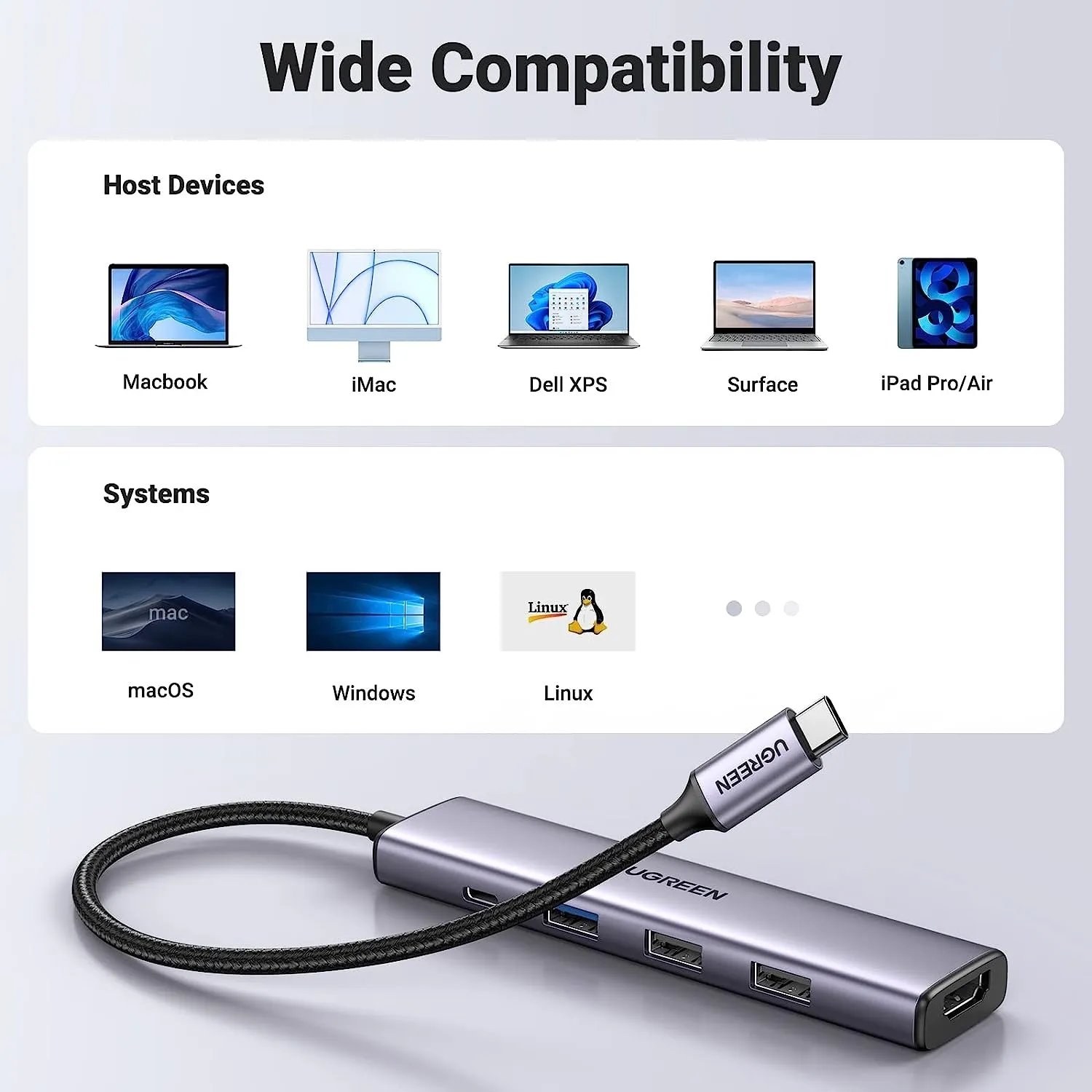 The USB C Dongle is compatible with almost USB-C devices such as MacBook Pro, MacBook Air, MacBook M1, M2, iMac, iPad Pro, Chromebook, Surface, XPS, ThinkPad, Galaxy S23, etc.