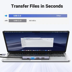Transfer files and form your laptop at speeds up to 5 Gbps to the USB-A 3.0 port. Extra 2 USB-A 2.0 ports are perfectly connected to your keyboards and mice.
