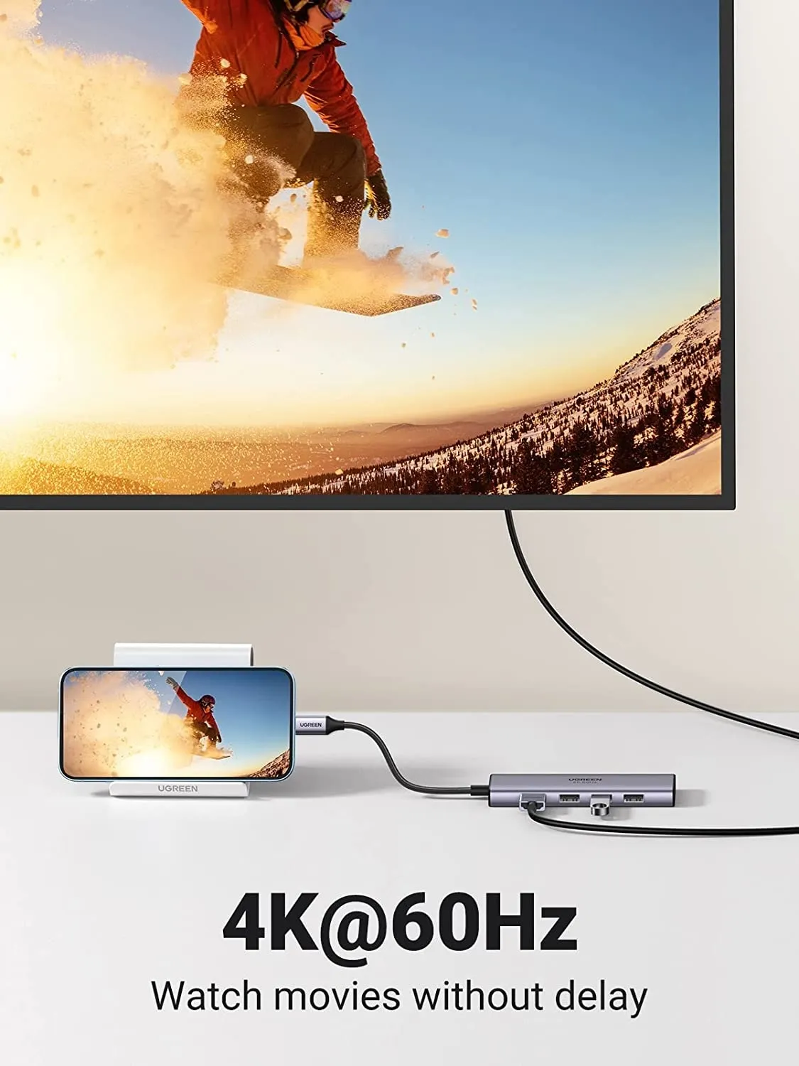 UGREEN HDMI hub adapter supports a variety of resolutions up to 4K@60Hz, 4K@30Hz and 1080p@60Hz, including 1080p, 1080i, 720p, and 480p.