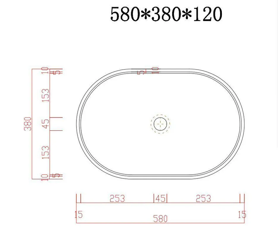 Elegant and modern matte model above counter Oval vessel CONCRETE basin 580mm x 380x120mm depth No tap/faucet mount No overflow Domestic, commercial and hotel use Variety of colours Chrome pop up Plug drain included. Matte Black.