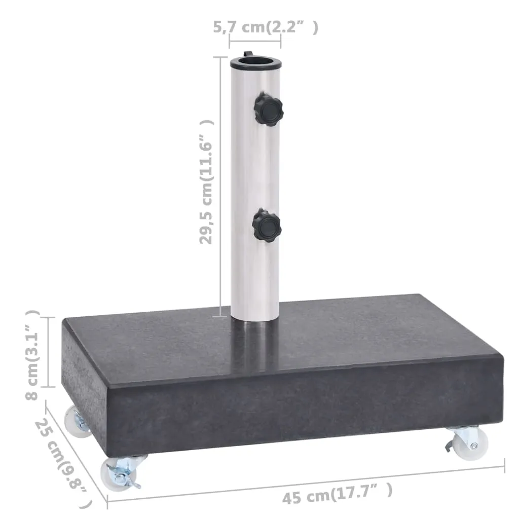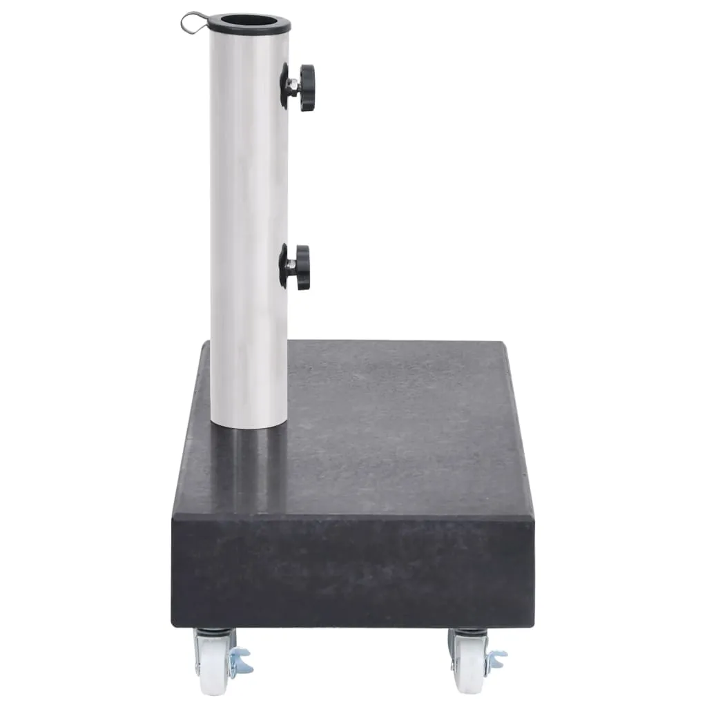 This umbrella base provides a firm and sturdy base for holding your parasol and keeping it from tipping over or being blown away. The umbrella holder has a durable granite construction that is very stable thanks to its hefty weight. The granite also has a high-end look and feel that gives the umbrella base a sophisticated appearance that will add a touch of elegance to your outdoor living space and complement your luxurious garden furniture. The tube is made of stainless steel. Additionally, the wheels also make the holder easy to move. The included 2 adapters suit parasol poles with a diameter of 38 mm or 48 mm. It's very easy to mount your parasol to the base and keep the parasol fastened tight and straight.