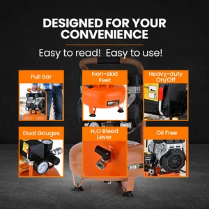 This Oil-Free Air Compressor is powered by a twin-cylinder 1.1kw motor - which is equivalent to a total output of up to 40% more than comparable models on the market!