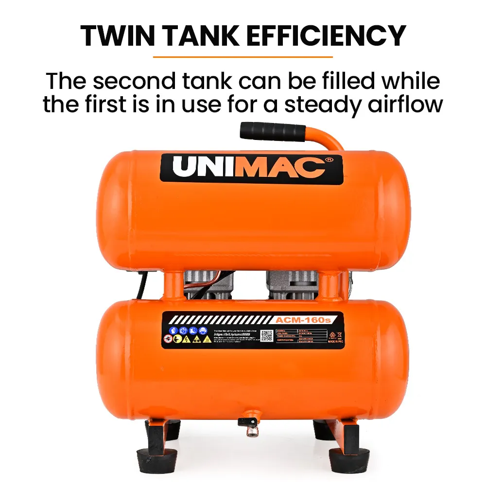 Introducing the new UNIMAC 16L twin-cylinder portable air compressor! This quality 2-Cylinder unit is ideal for anyone looking for the performance and reliability of our UNIMAC oilless electric air compressors with the portability of a smaller unit. It is the ideal compressor for the tradie on the move, home mechanic or DIY’er!