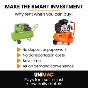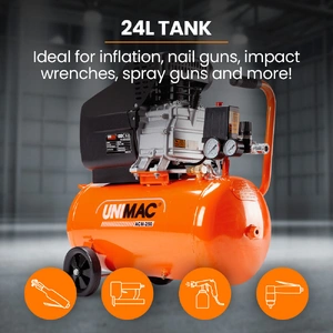 The Unimac ACM-250 Direct Drive Air Compressor is designed for tradies and DIYers who don't mess around. This unit packs the grunt and reliability you need when the pressure's on.