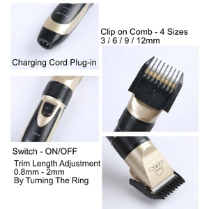 4 different combs - The adjustable clipping comb is applicable for clipping hair of different lengths; (3mm/6mm/9mm/12mm,) skin-friendly contour-following combs make it safe, easy and comfortable to use.