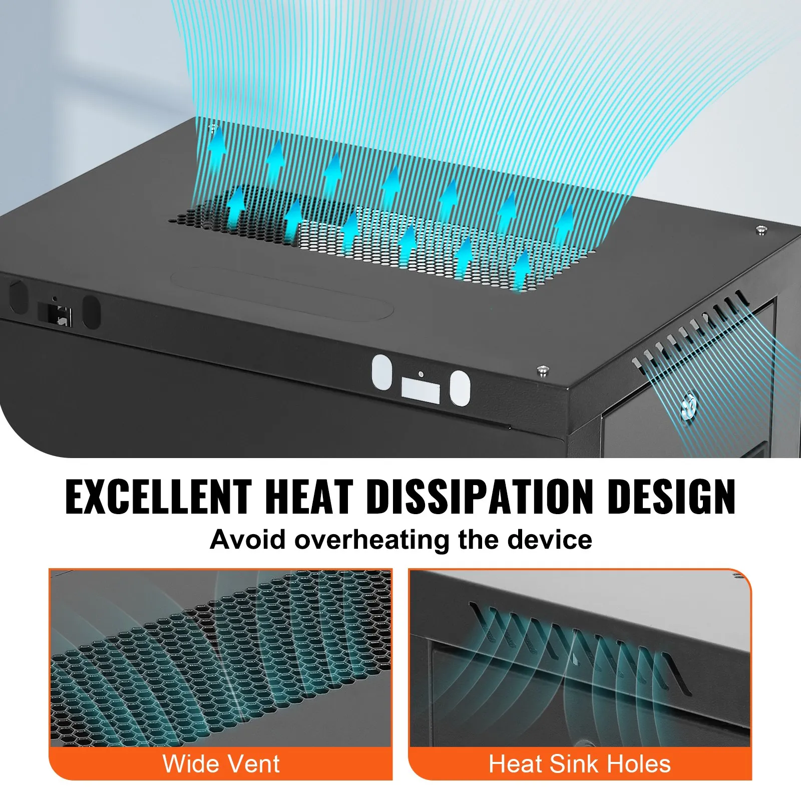The server cabinet is designed with vents to optimize airflow and avoid critical IT equipment overheating. Heat sink holes in the top, bottom, and rear panels are more conducive to heat dissipation.