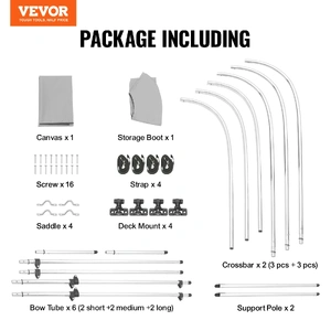 Comes with 2 support poles and 4 straps for flexible installation. The bimini top provides two installation options - fold back or fold down for your convenience. Quick-release straps make the installation process effortless. Additionally, it includes a storage boot that is dust and waterproof, ensuring the safety of your bimini top when not in use.