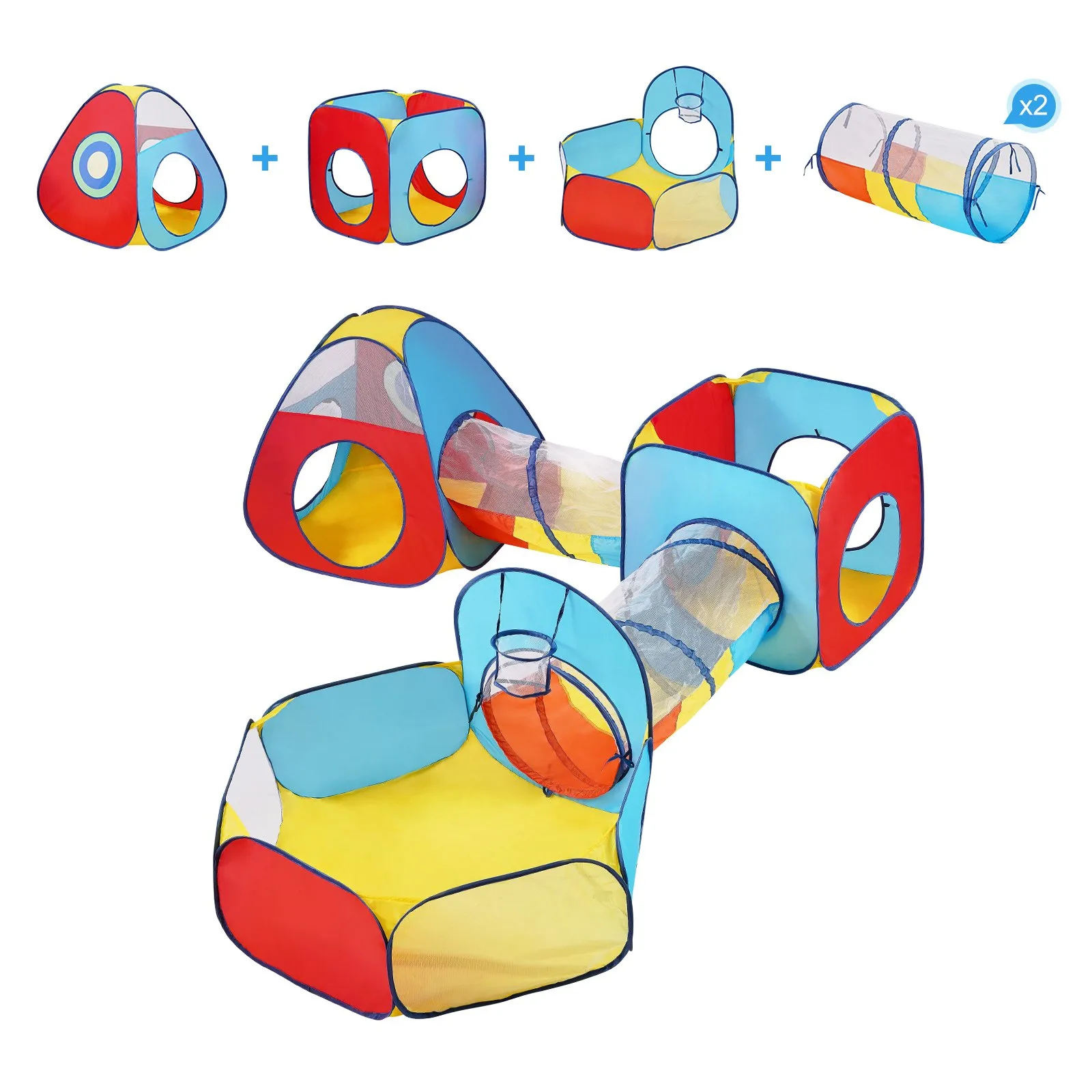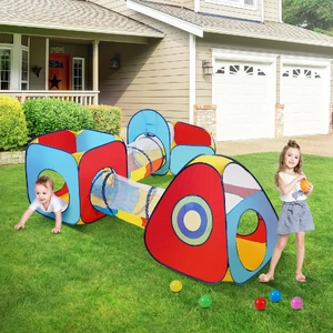 The vibrant and bright colors are designed to capture children's attention and ignite their imagination. With a 5-section design, kids can freely arrange and play, whether it's chasing, crawling, or playing hide-and-seek inside the tent tunnel. This stimulates children's brain development and provides endless joy!