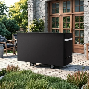 The barbecue cover uses a PVC lining + polyester fiber layer + waterproof layer, with all seams reinforced with waterproof strips and coated with sealing glue. It provides five layers of waterproof guard, with water resistance up to 800cmH2O. It completely blocks rainwater penetration, offering full guard for your grill and extending its lifespan