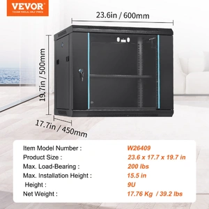 Robust welded frame construction for durability and long service life. With 100 lbs wall-mounted load capacity and 200 lbs ground-mounted load capacity, you can place multiple devices in the server rack cabinet as needed.