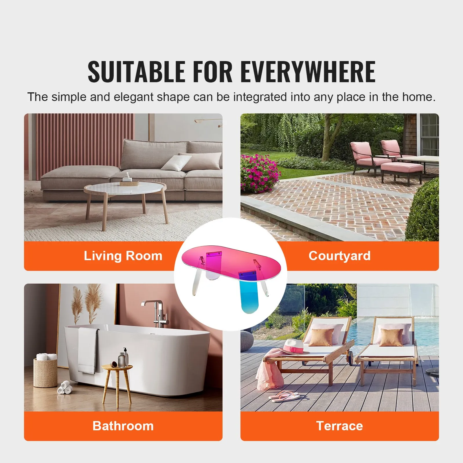 With an oval larger tabletop, our iridescent acrylic end table not only provides storage for daily supplies but also serves various functions such as displaying decorations and serving as a workstation. The smooth edges significantly reduce the risk of daily bumps and injuries.