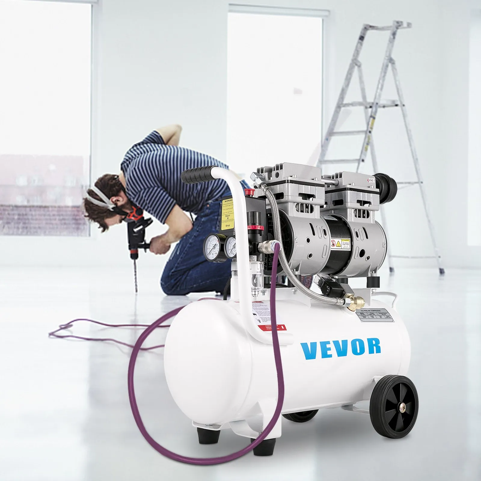 The air compressor is suitable for most air tools for tire inflation, vehicle repair, and house renovation, such as drills, nailers, caulk guns, pneumatic wrenches, spray guns, chisels, paint sprayers, etc.