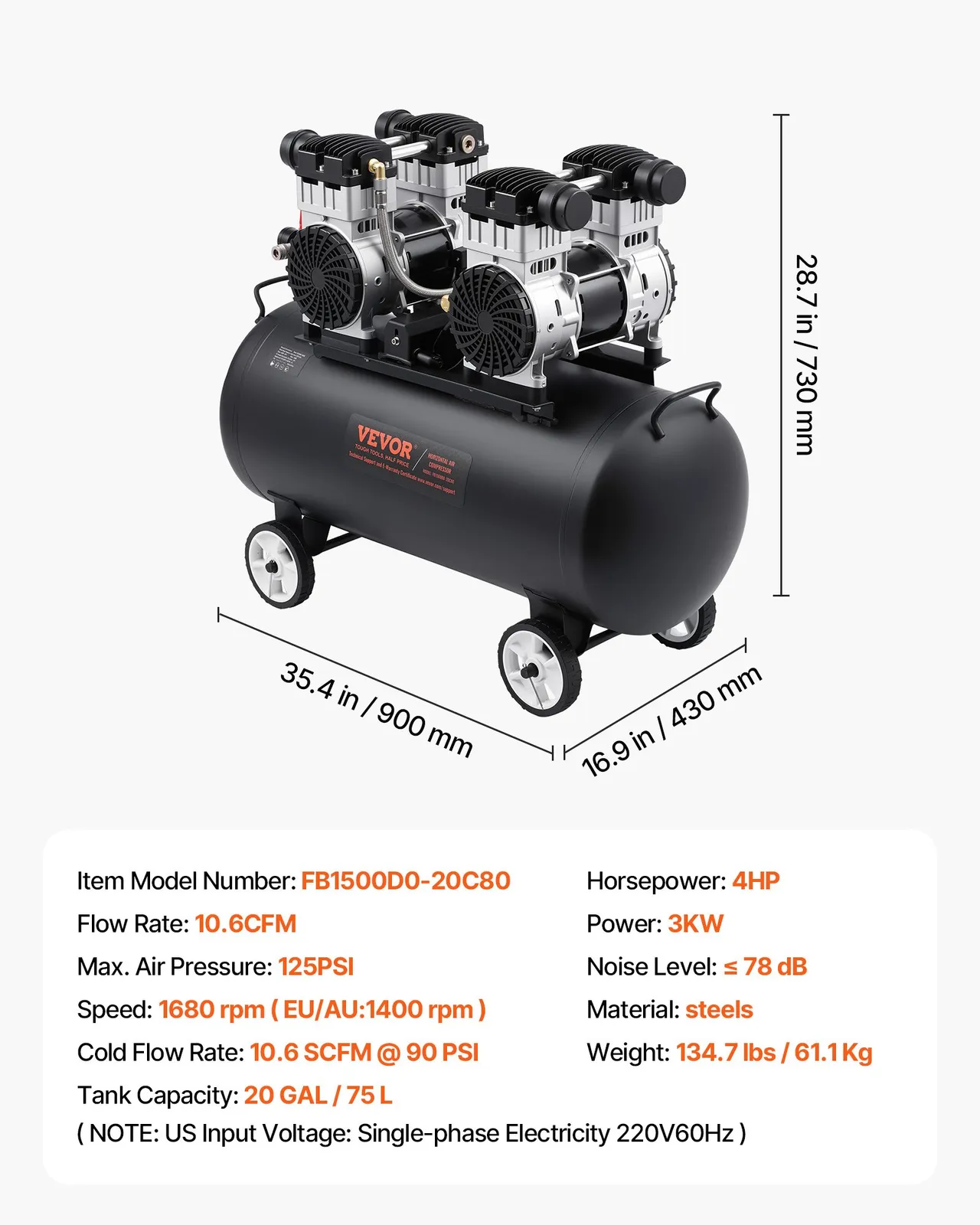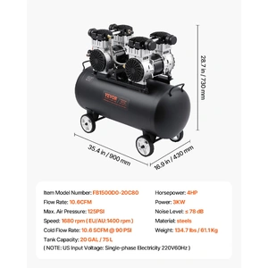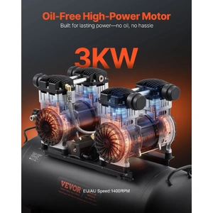 Our 3KW oil-free motor drives the compressor up to a speed of 1400 r/min and 10.6 CFM@ 90 PSI air delivery. It is ideal for supporting a variety of pneumatic and air tools, such as nail gun, impact wrench, spray gun, pneumatic screwdriver, best for tire inflation, auto repair, spray painting, woodwork nailing, etc.