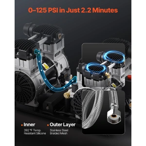 The air compressor tank is equipped with large cooling fan and automatic overheating protection to prevent damage. In addition, when the current or storage pressure is too high, the compressor will automatically shut off or provide pressure relief protection.