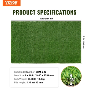 VEVOR Artifical Grass, 6 x 10 ft Rug Green Turf, 1.38"Fake Door Mat Outdoor Patio Lawn Decoration, Easy to Clean with Drainage Holes, Perfect For Mult