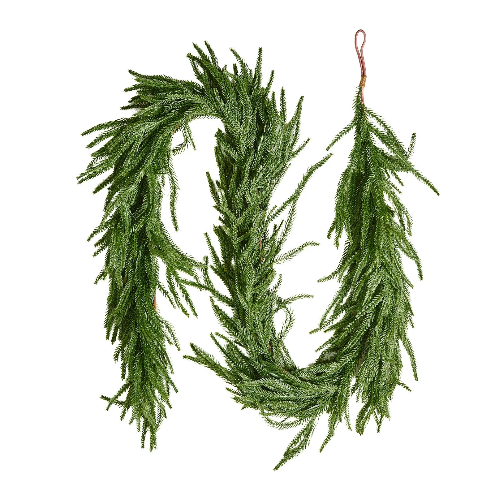 This 6-foot Christmas garland features realistic Norfolk pine with a full and fluffy shape. Lush, dense, and true-to-life, it brings the beauty of nature into your holiday decor with vivid texture and seasonal charm