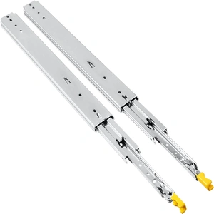 Constructed with 0.75"/ 19 mm thickness cold-rolled steel (CRS), the heavy-duty drawer slides have up to 500 lbs/ 227 kg load capacity. Secure and rugged enough to support heavy storage without deformation over time. The zinc-plated surface stays the extension drawer slide be rust-proof and abrasion-proof, ensuring lifetime use. The slides can be applied to goods shelves, cabinets, the industrial drawers, RVs, trucks, vending machines, etc.