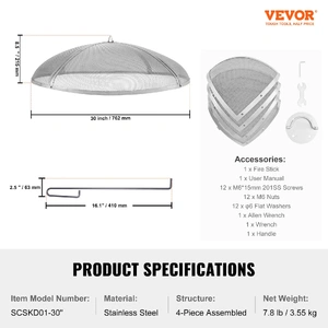 VEVOR Fire Pit Spark Screen Round 30", Reinforced Heavy Duty Steel Metal Cover, Outdoor Firepit Lid, Easy-Opening Top Screen Covers Round with Ring Ha