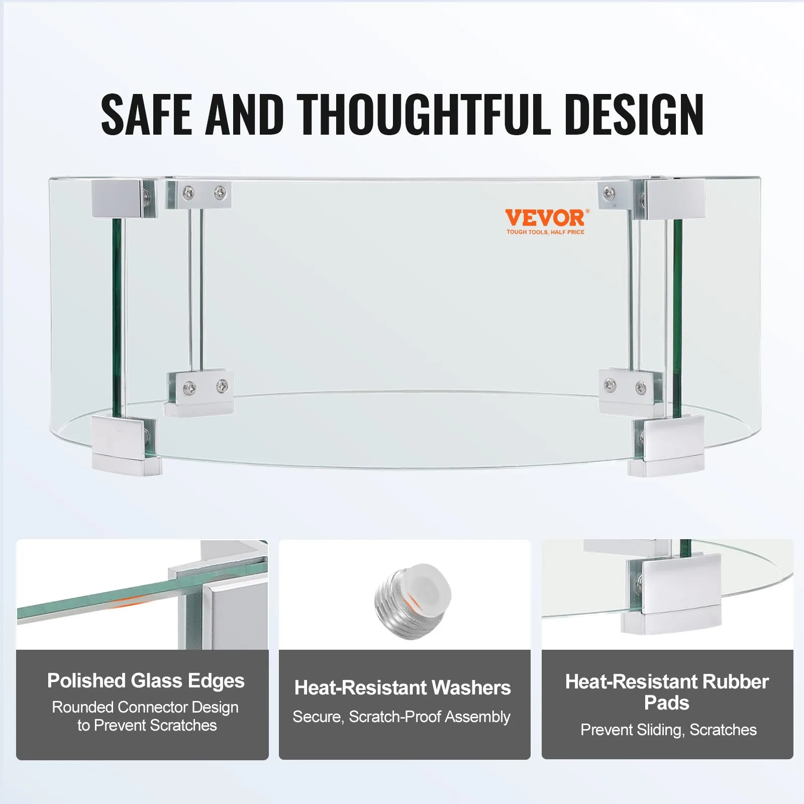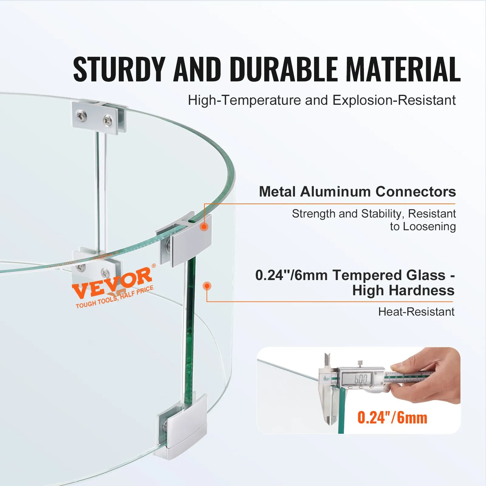 Our fire pit windscreen is made of strong, heavy-duty tempered glass with polished edges-so it lasts as long as your fire pit does. Wind boards are 0.24 inch in thickness, providing assuring stability and security. Aluminum brackets offer firm connection and steady support. In contrast to ordinary glass, our premium material extends the service life.