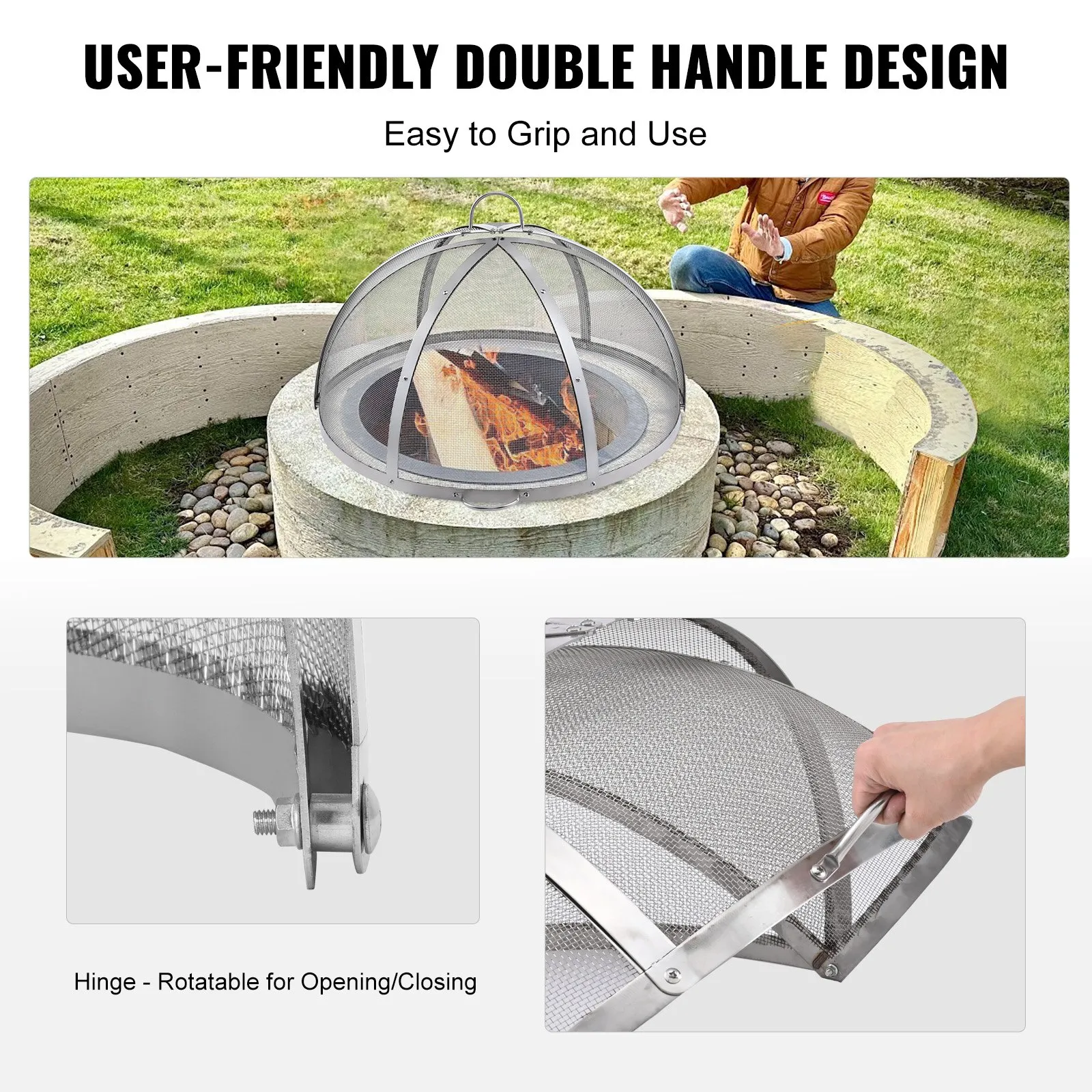 VEVOR Firepit Spark Screen Lid, 30" Diameter, Outdoor Firepit Ring Cover Round Accessories, Fire Pit Metal Cover, Easy-Opening Stainless Steel Fire Ri