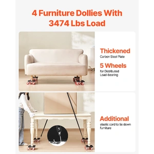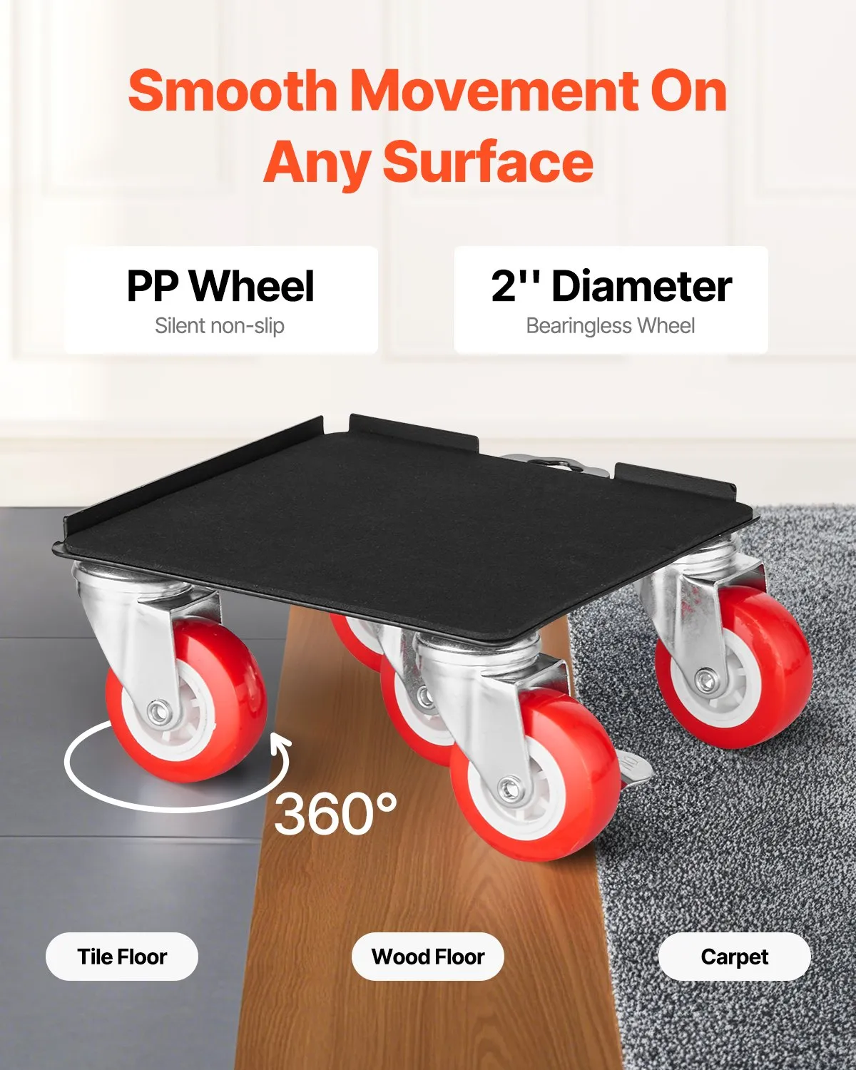 Utilizing all four furniture dollies together, you get a remarkable 3474 lbs load capacity. Made from high-strength carbon steel, the sturdy structure of our furniture mover ensures reliable stability when moving heavy items like sofas and refrigerators. Designed for long-term use without deformation, the furniture movers for heavy furniture are ideal for home moves, deep cleaning, and warehouse organization.