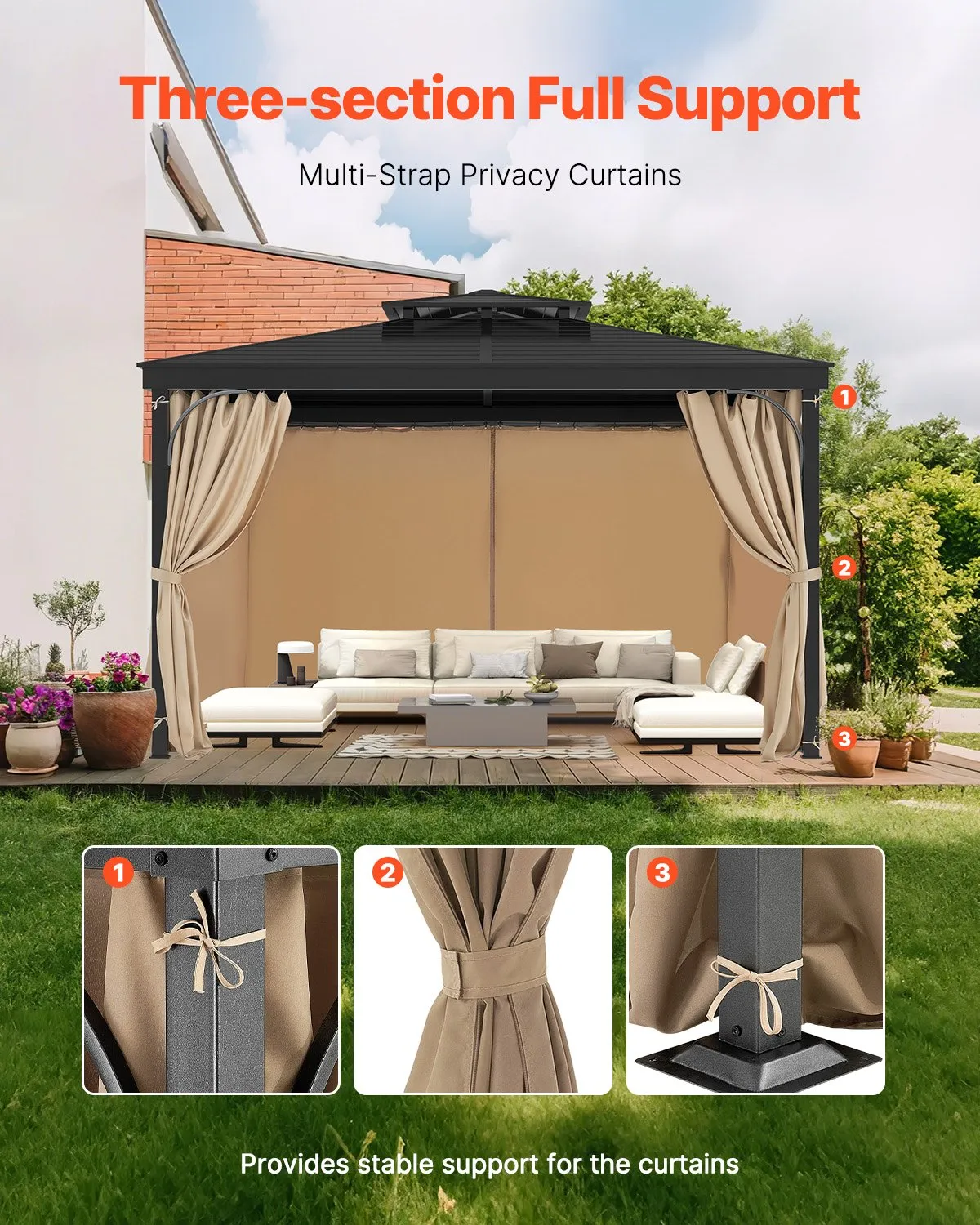 The gazebo replacement curtains features dual-sided zipper that enables effortless opening and closing from both sides, offering great convenience for easy access in and out of the gazebo.
