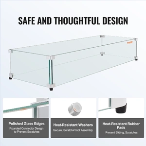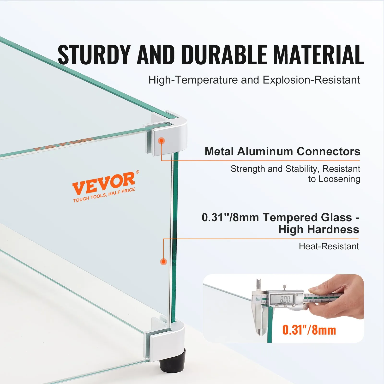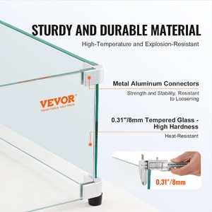 Our fire pit wind guard is constructed with four tempered glass panels, each 0.31''/8mm thick, offering high hardness and heat resistance while being less prone to breaking. The connectors are made of aluminum alloy material, providing strength, stability, and secure installation to prevent the wind guard from loosening or falling off.