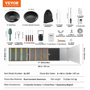 The sluice box is constructed from lightweight yet sturdy aluminum alloy, making it easy to carry in the field and resistant to harsh outdoor conditions. Its excellent rust resistance ensures long-term use even in moist conditions, maintaining durability. Superior scratch resistance and durability make it the ideal choice for gold prospectors.