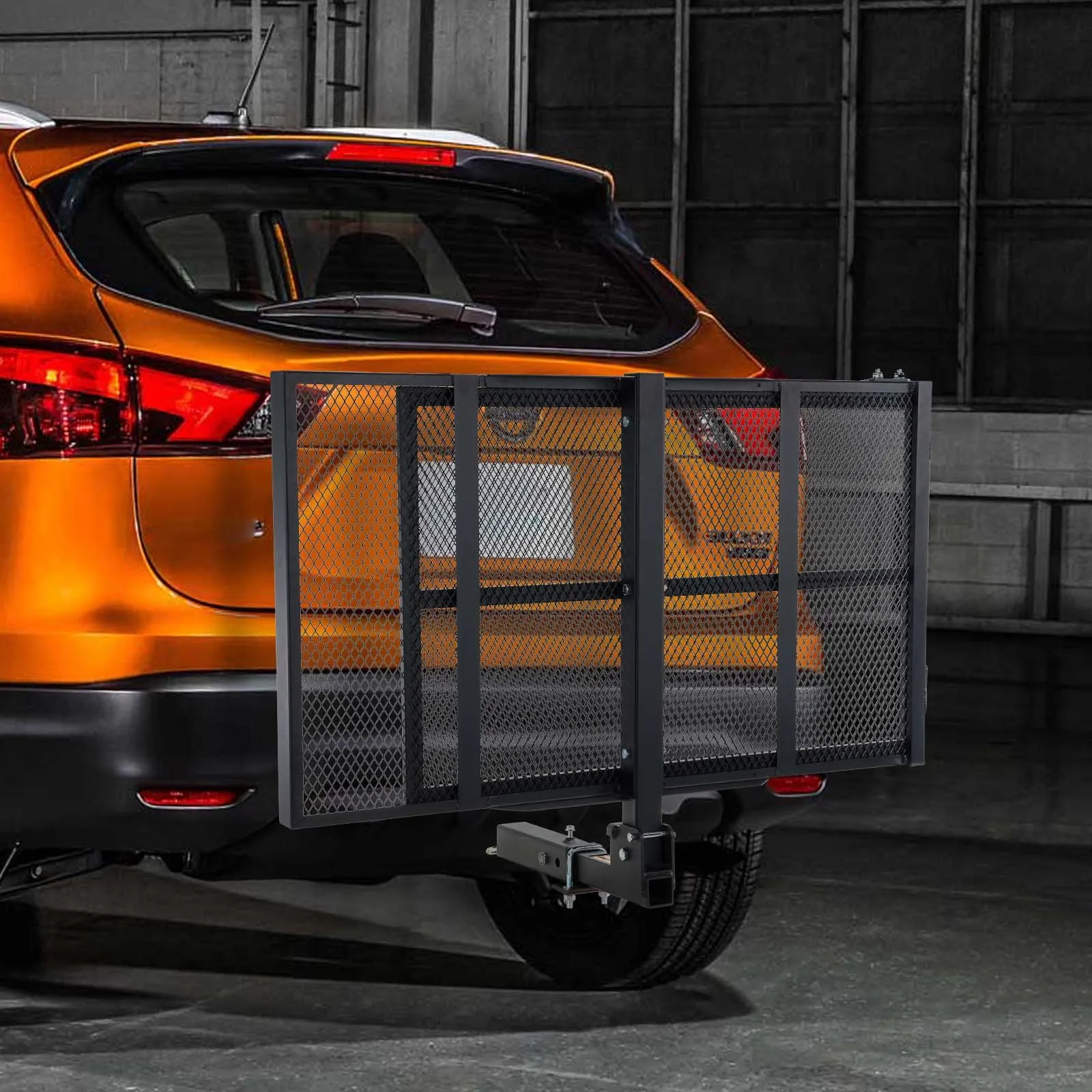 Say goodbye to heavy lifting! Our hitch mount wheelchair carrier, with 45.3" x 25.6" large inside loading area, effortlessly handles loads of up to 500 pounds, whether you're transporting your scooter or gearing up for an adventure. We've got your back!