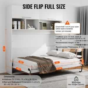 Designed for horizontal FULL mattresses, dimensions are 60"x82.25"x61", suitable for mattresses measuring 75"x54"x(6-10)". The flipping direction is sideways, allowing for convenient access and effective use of bedroom space.