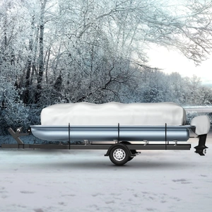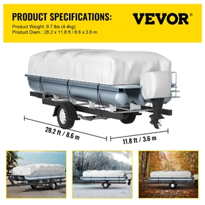 Our trailer pontoon boat cover is measured to be 28.2 ft in length, suitable for a 17'-20' pontoon boat. It is compatible with almost all pontoon boats of this size. It is a necessary supplement for your boat accessories, perfect for boat storage and mooring. Keep your boat protected, we got you covered.