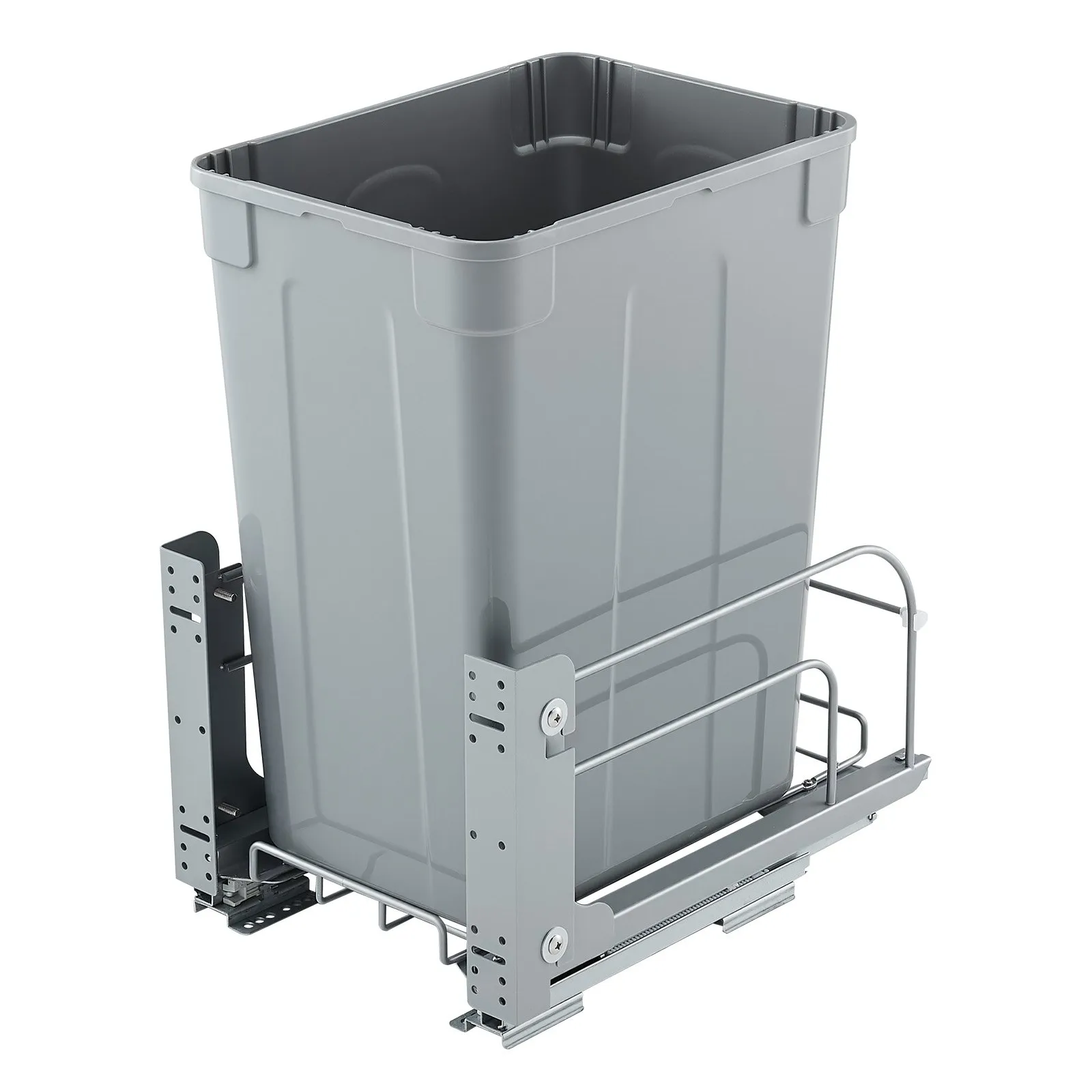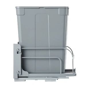 The under cabinet trash can features a door-mounted design for greater convenience. Simply pull the bin out from the base cabinet, and thanks to the smooth sliding tracks, you can effortlessly slide it in and out without noise or obstruction