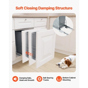 The under counter trash can features high-quality damping rails with soft-close technology, allowing you to smoothly and quietly slide the bin in and out. There's no need to constantly adjust the bin, making trash disposal easy and comfortable. The bracket is made of iron, offering strong rust and corrosion resistance and can be wiped clean for long-lasting durability