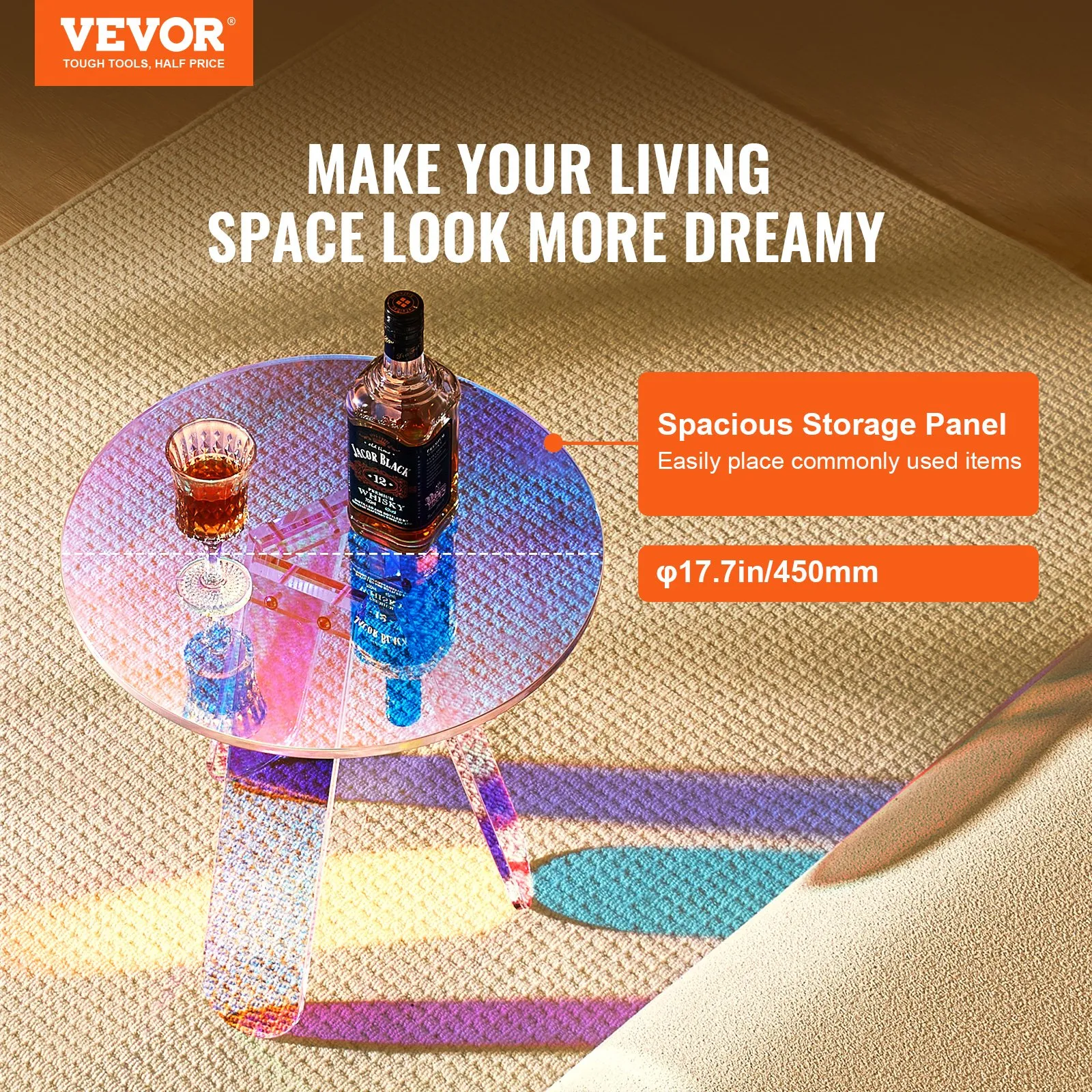 Our rainbow side table boasts a crystal-like gloss and transparency, effortlessly matching various home decor styles. Use it by the sofa, bed, or in a balcony corner, offering convenience whenever you need a surface to place your belongings.