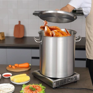 This large-capacity heavy duty stock pot can accommodate more ingredients in one go, saving on cooking time. It's also suitable for processing larger foods like turkey and lobster, ensuring even heating and thorough cooking.