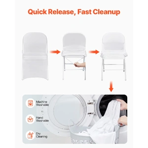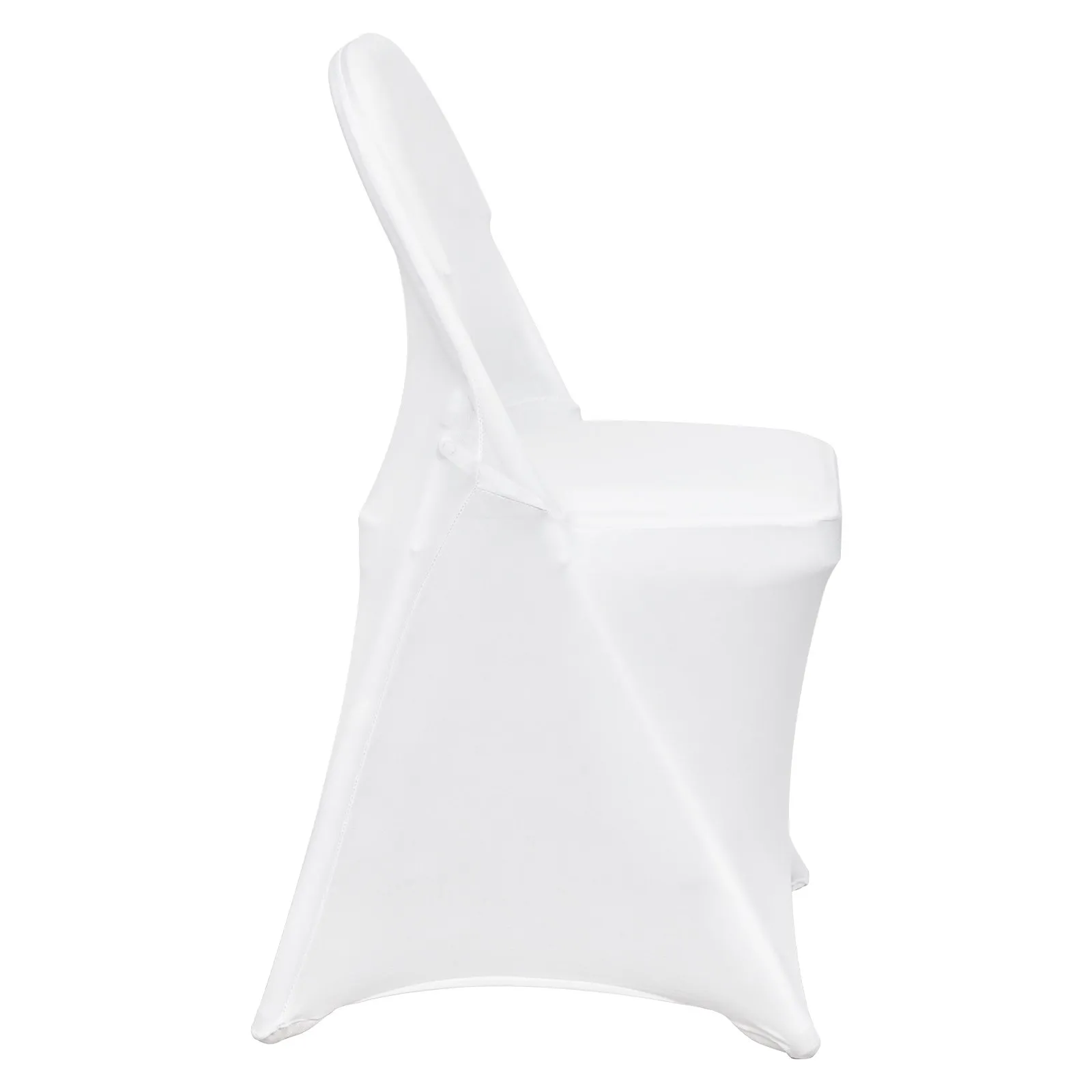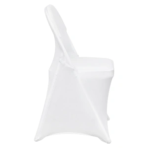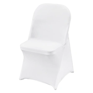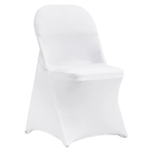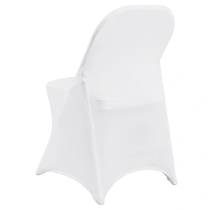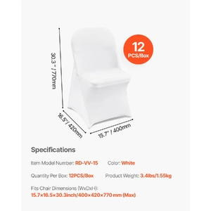 Color: White; Quantity per box: 12 PCS; Material: 95% Polyester Fiber & 5% Spandex. Durable fabric and quality stitching offer additional comfort and elasticity. Universal spandex folding chair covers are designed to protect your chairs from accidental spills, pet scratches, everyday stains, and tears, making them ideal for both indoor and outdoor events.