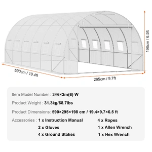 With a spacious 19.36x9.68x6.50 ft area, this walk-in greenhouse tunnel is ideal for a variety of plant needs. It allows easy management and maintenance, and accommodates multiple plant shelves, making it ideal for both home and commercial gardening.