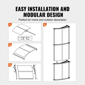 This canopy is made of transparent PC panels, ABS brackets, and aluminum alloy installation bars. The PC panels offer excellent transparency, temperature resistance, and durability. The high-strength ABS brackets remain intact without deformation. The aluminum alloy installation bars ensure a secure and watertight installation, withstanding strong winds and storms, providing long-lasting quality protection for your windows and doors.
